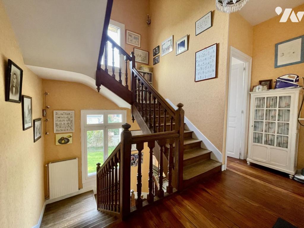 Dès l’entrée, vous serez séduits par une superbe cage d’escalier menant aux étages, un double séjour lumineux avec cheminée et une cuisine équipée, ainsi qu’un WC.